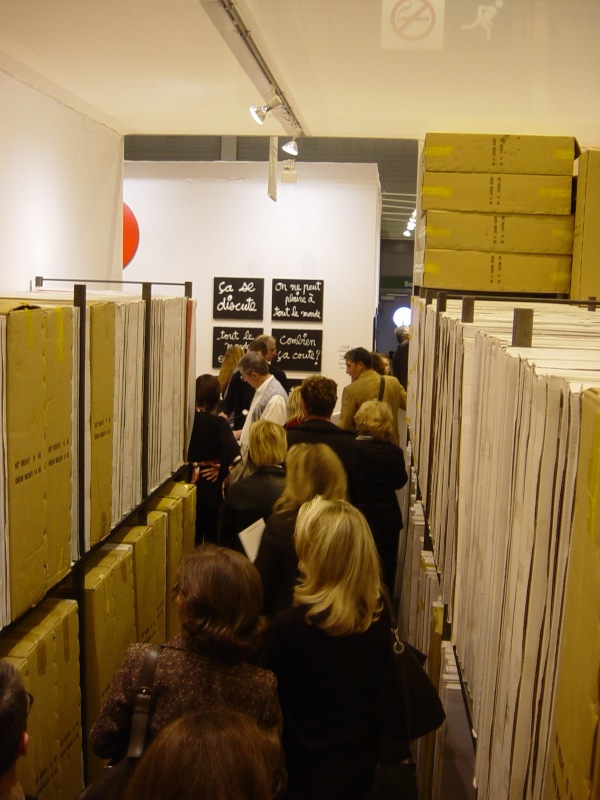 Before even arriving in Europe, 350 paintings are sold, and the remaining 650 during the pre-opening. Result: an empty booth during the fair. A book Rapport d’activité, published in 2006 draws the many contours of the project: statistics, pictures from the booth and from the collectors, and the first chapter of Arthur Danto’s The transfiguration of the commonplace.