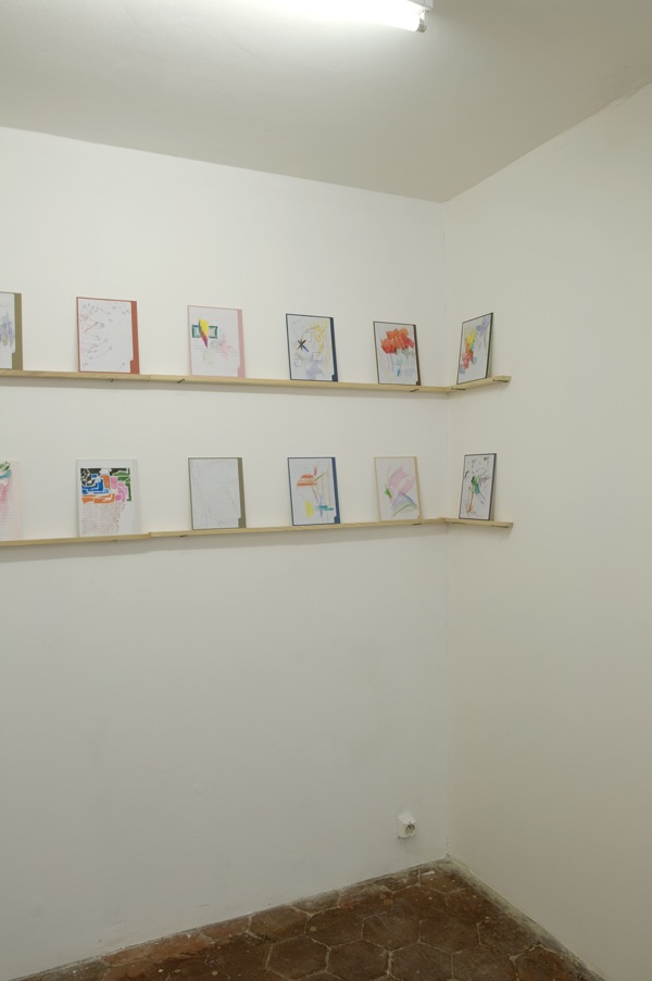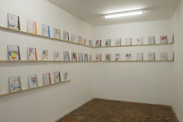 During my vacations, I bought an address book containing 60 pages. I made also bought a box of pencils and drew on each page. Back home, I transfered the each drawing on colored cardboard.