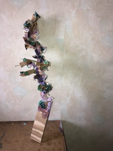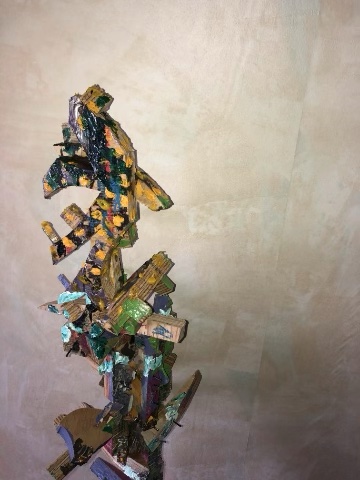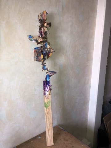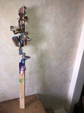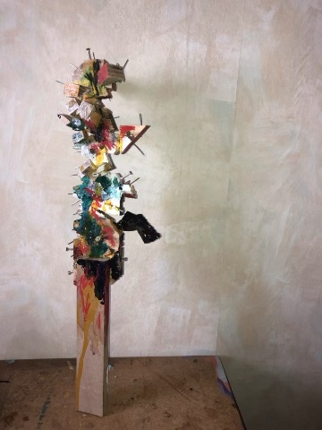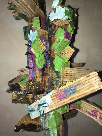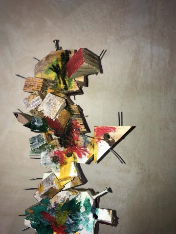 Angst Pieces #1 and #2, hanging out together, both hanging from a pair of bull's balls