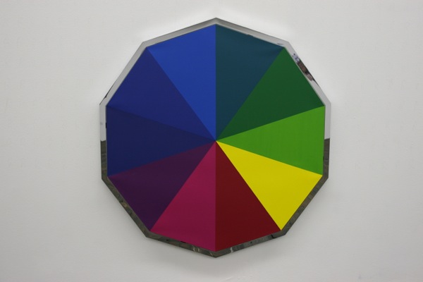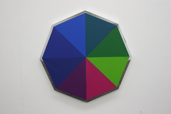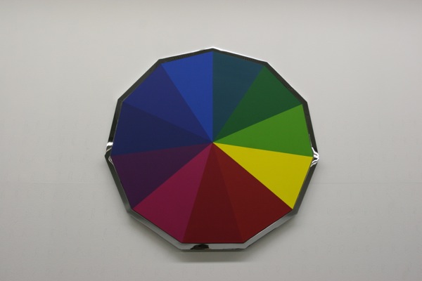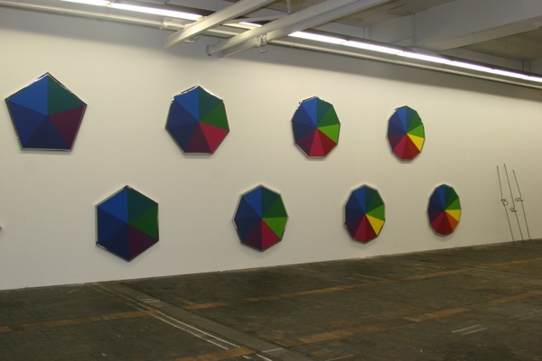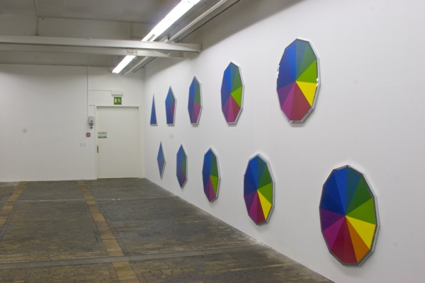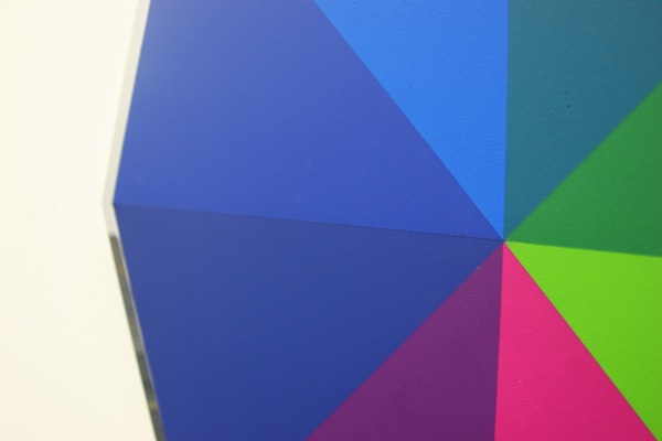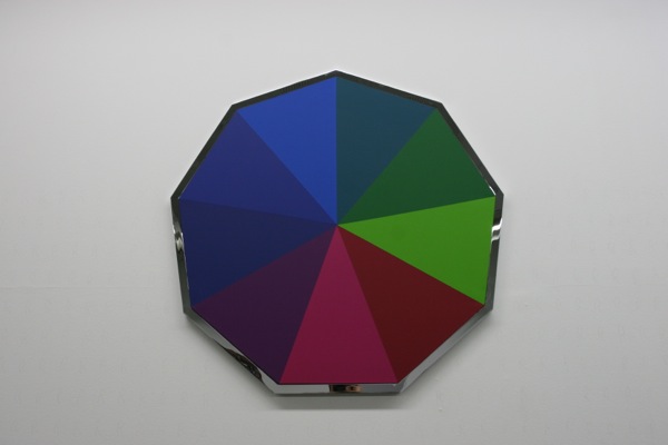 A series of 10 paintings, in a chromatic progression, starting from 3 shades of blue on a triangle to 12 colours on a dodecagon. Each painting has one more side than the one before, and thus one more colour. The word ‘Chrome’ in ancient greek means ‘Colour’.