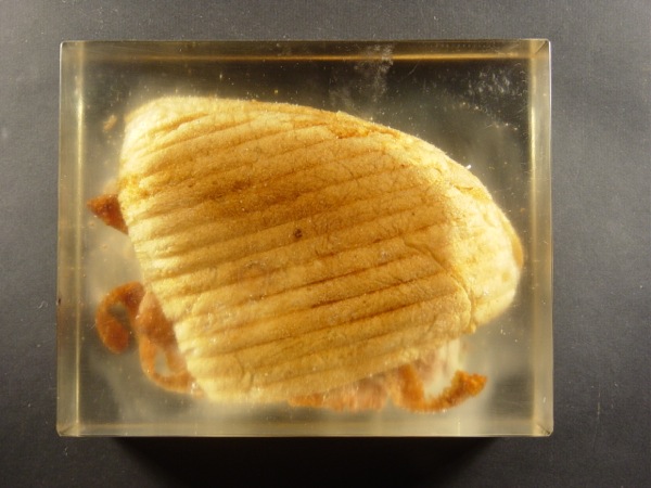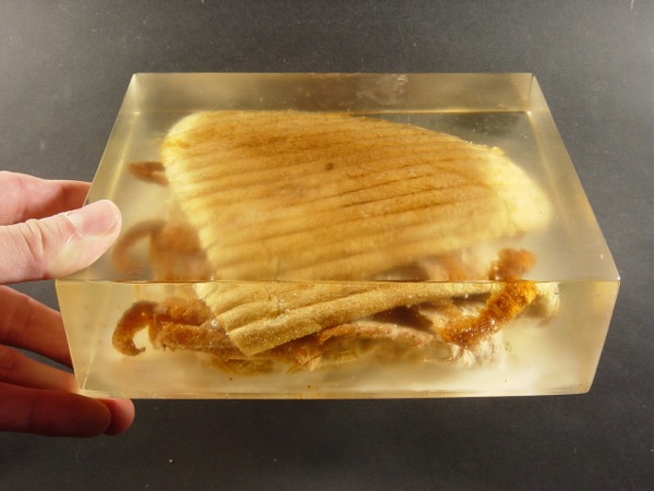 A friend of mine goes to Berlin in vacation. I ask him as a joke to send me a kebab from there since Berlin is the capital of these kind of sandwiches. Three days later, I received a package by ups with the kebab inside. Willing to take keep this joke taken literally, I find someone who accept to put it in resin.