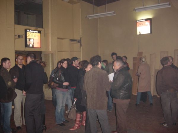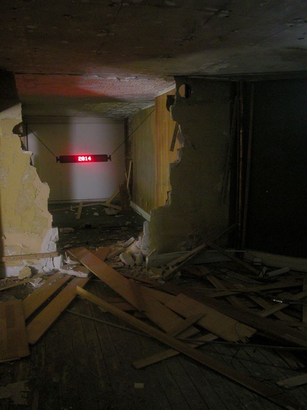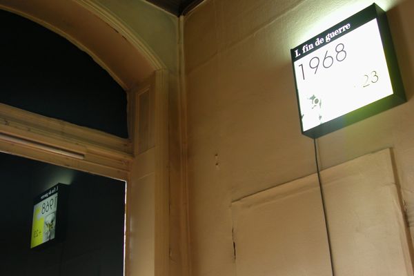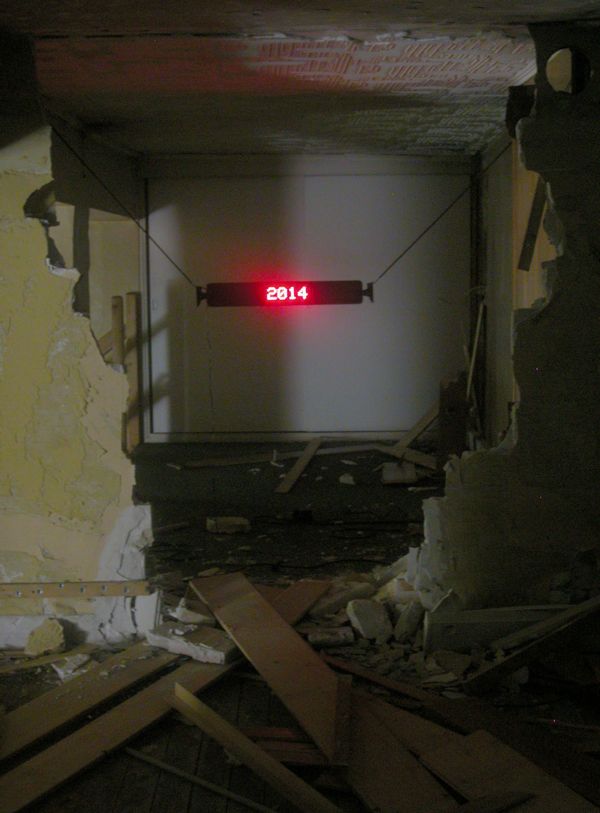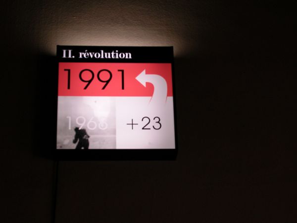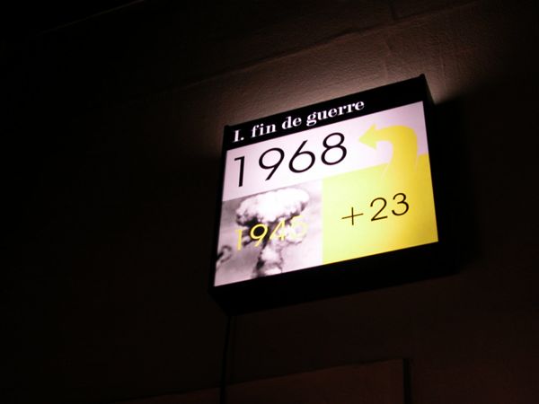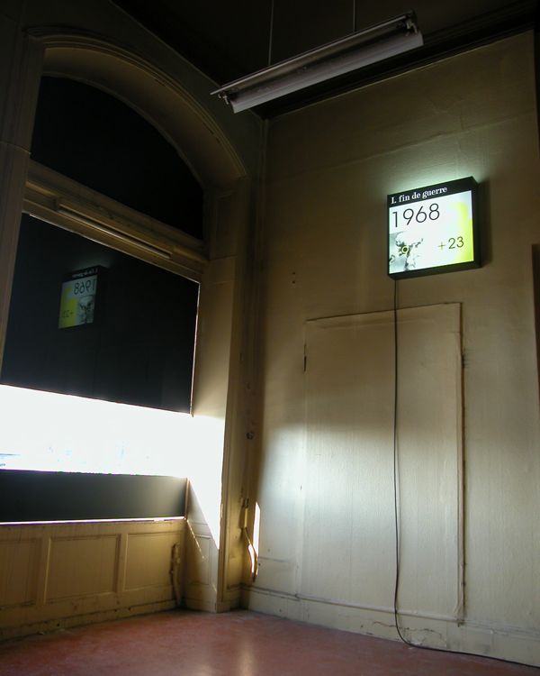 Instead of proposing a precise scenario, the installation merely makes the point of the possibility of it. Staged on the same plan found in churches with the stations of the Cross (as a technical device to make people believe in something even if it's completely absurd) the installation become a chapel for a revolution to come, letting the visitor, now a wannabe believer, project whatever fear, desire or else on this date, in the near future.