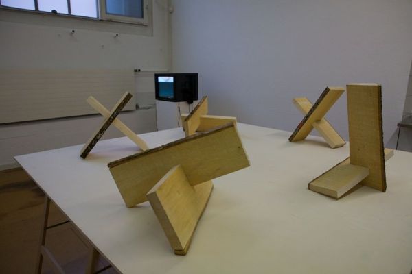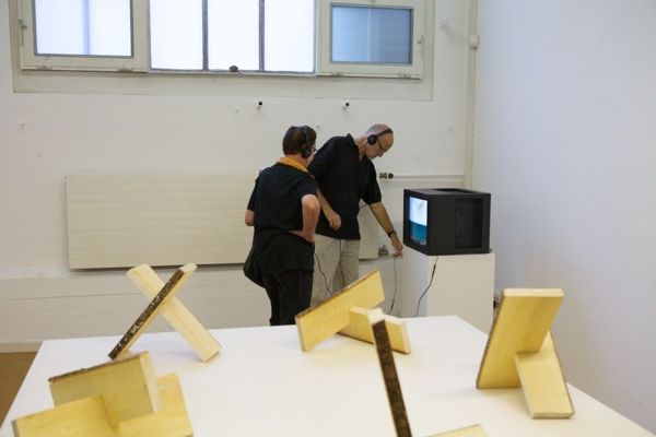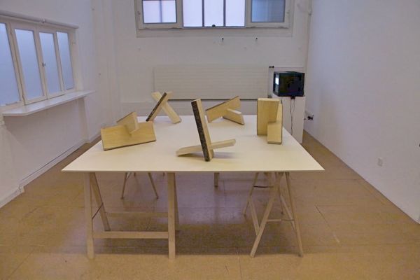 Wood came as a means that is easy to work with and is in itself something highly recognizable by touch only. Five people joined the workshop, each one had an object made. A monitor with a video of close-ups of the objects has a background track made of tales and personal stories of the participants.