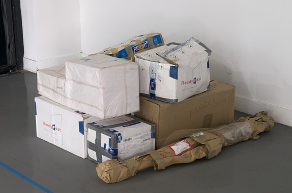 The curator who received the boxes, decided not to open them. Now only one box is only open for each new exhibition, thus pairing two cities: the place the boxes where sent from and the exhibition place. So far: New York City, USA / Sassari, Italy; Curzco, Peru /Montreux, Switzerland; Las Vegas / Montreuil, France.