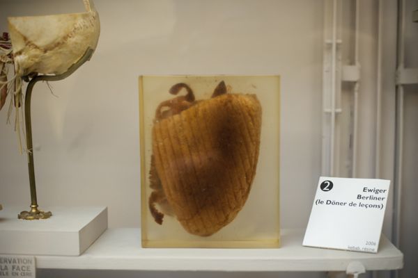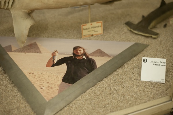Exhibited pieces: Schrödinger’s cat, Ewiger Berliner, Je m’en fiche/I don’t care, Perspective et points de fuite pour blagues, untitled (Cairo), 60 dessins..., Frab/Crog, Dur à faire, A stone sculpture made by hand