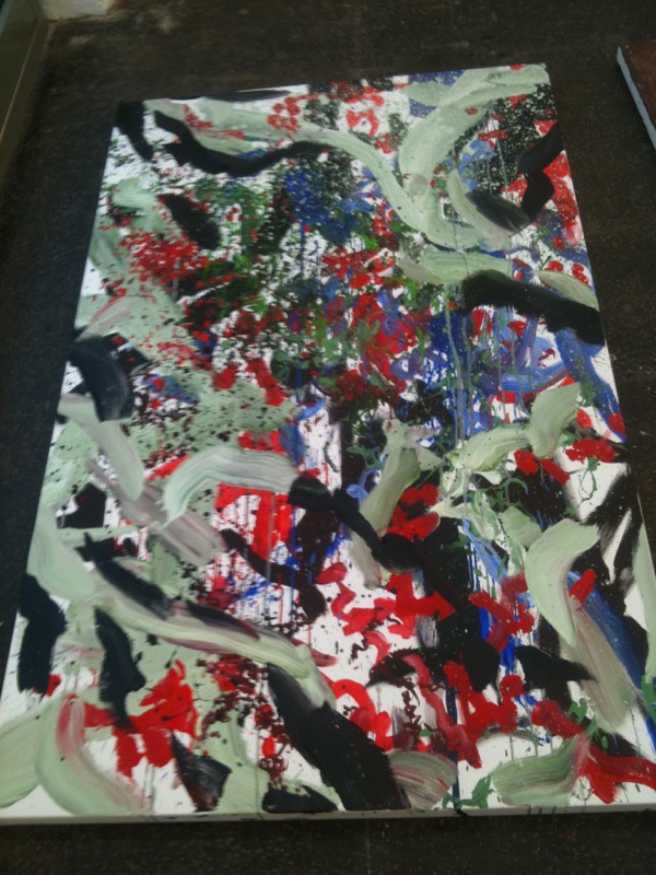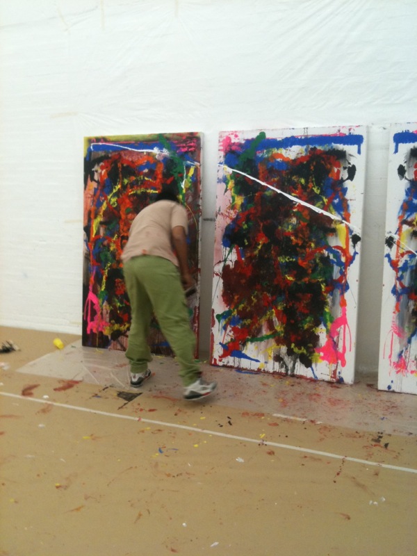 Action-painting workshop given for the exhibition For Real! at the Kunsthalle St. Gallen, with the other participating artists: San Keller, Norma Jeane, Fouad Bouchoucha and myself.