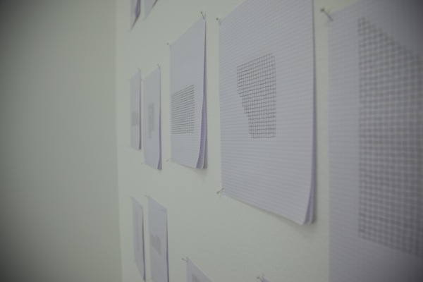 pencil on paper, pins