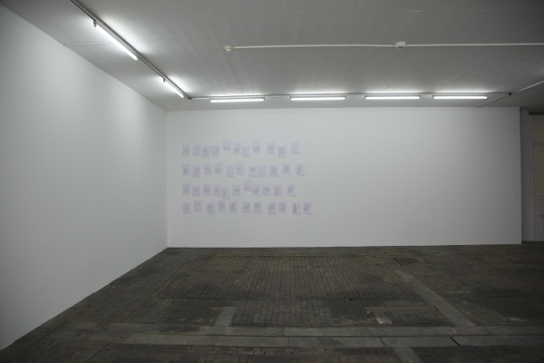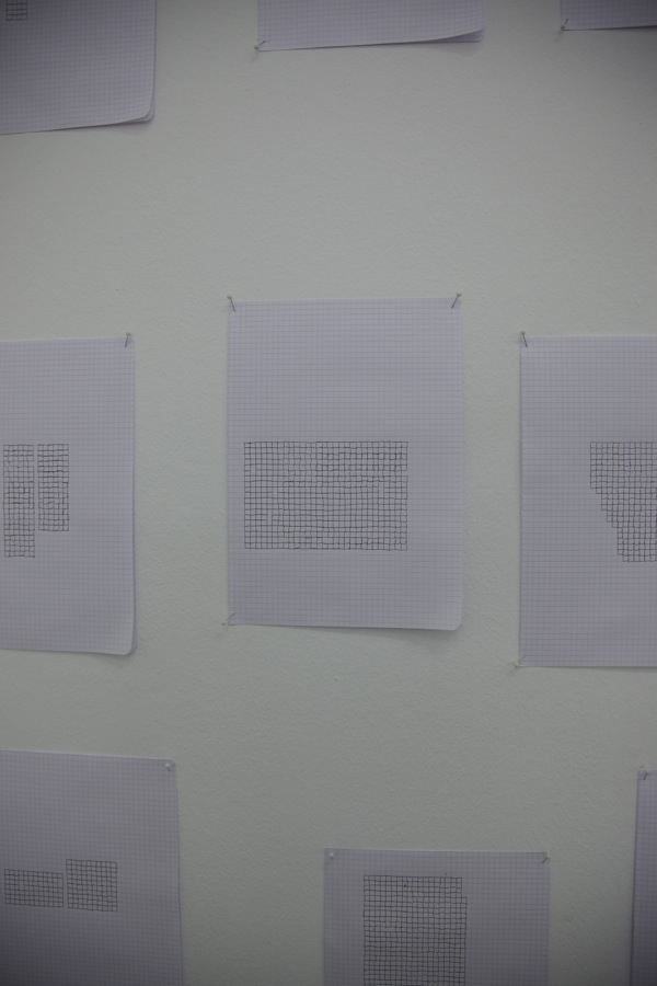 The pages of the notebook are A3 pages folded in two. I kept the initial format, and pinned the drawings on the wall on three corners only, so that the structure of the double page can be seen and participate in the work.