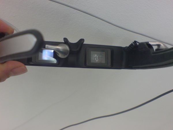 The result is a video camera inserted in a eye-bulb-shaped dildo, connected to two pairs of A/V glasses transmitting the image directly. The apparatus is made for two people, one inserting the dildo, the other one being inserted in the anus. Men and women alike have anus, so it could be used in any configuration.