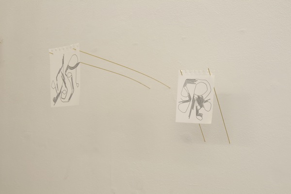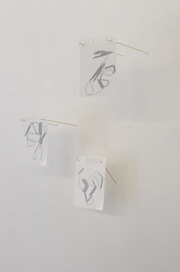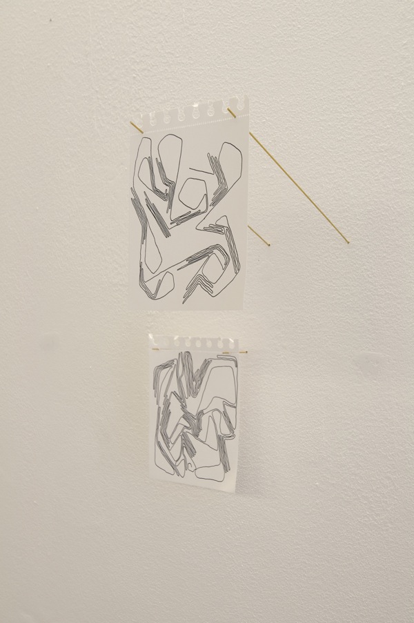 17 drawings, pen on paper, brass