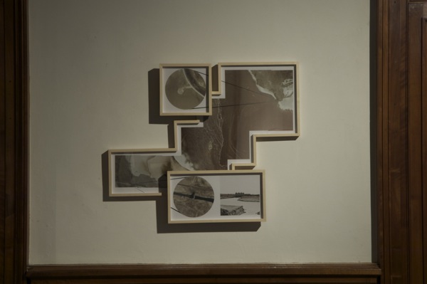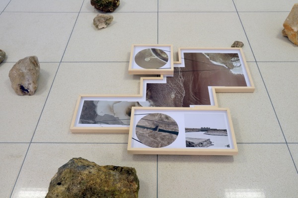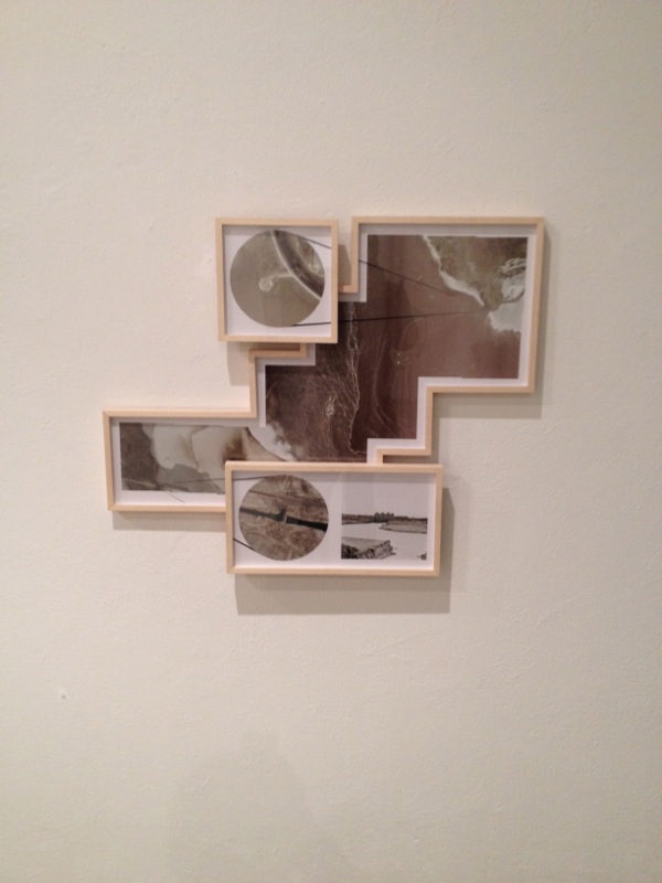 USA, state of Utah, on the other side of the Great Salt Lake, vis-a-vis of Smithson’s Spiral Jetty there’s a huge pumping station uncharted on official maps. This station is responsible for the lake’s water level and thus for the appearance and disappearance of the Jetty. I went to the station, took a picture of it, then found satellite photography of the region, placed the station in perspective toward the Jetty and made this semi-sculptural, semi-photographical work of living room land art.