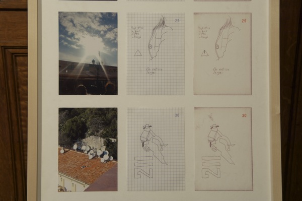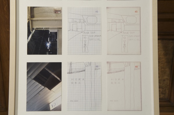 Visiting a friend in Nice, France, I spent five days in the city. I bought a carbon copy notebook and started to draw quickly things I saw. Each drawing is made in one particular place. When the drawing was finished, when there was nothing else to copy, I took a picture with a point-and-shoot camera, a picture of something i didn't draw.